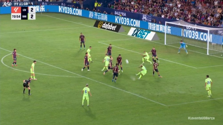 踢水球亚马尔禁区撞墙后射门踢呲直奔边线, 脚下溅起一滩水花