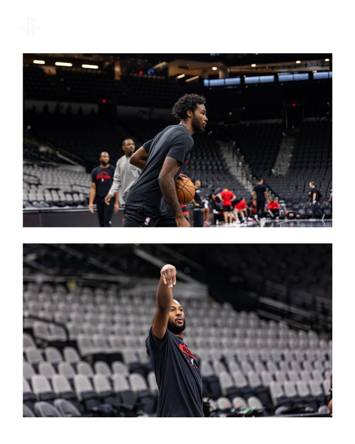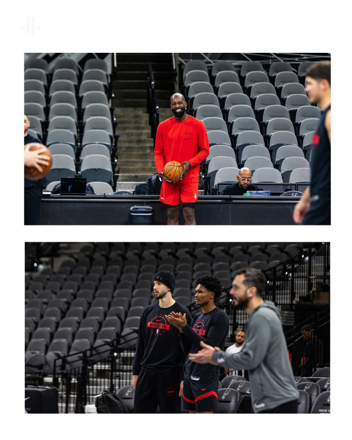赛前,火箭社媒晒出火箭球员踩场训练的瞬间,凯文-杜兰特等球员出镜。