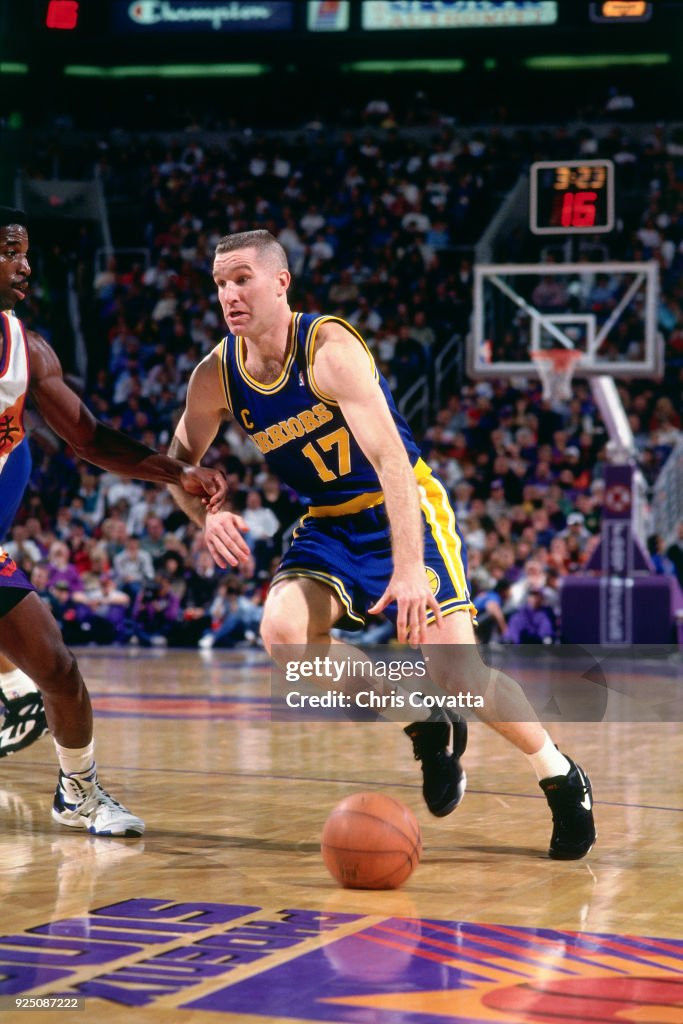 1992-93赛季,他因伤只出战46场,虽然还是26+5+4的水准,三分球命中率高达45%,还能入选全明星,但是勇士远离季后赛。