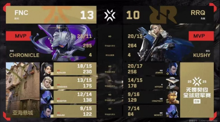 FNC上半场凭借小王子不讲道理的枪法成功拿到比分领先,下半场RRQ虽然开始追分但是面对FNC多人强大的火力数值终结还是被FNC终结比赛拿下胜利!