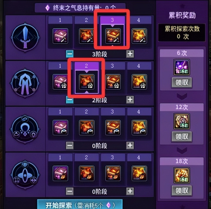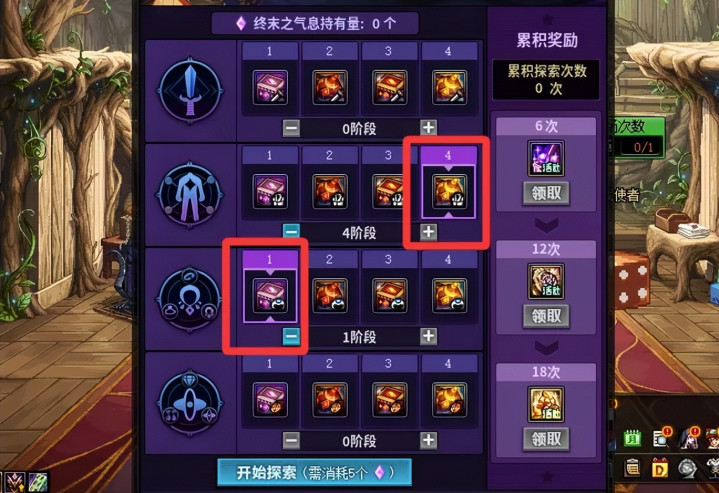 比如分配4个气息到防具部位、1个气息到首饰部位,那么保底可以拿到“1个史诗随机罐子+1个神器自选礼盒”。