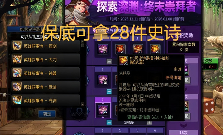 DNF: 必得28件史诗! “探索深渊”玩法一条龙, 低配版史诗之路!