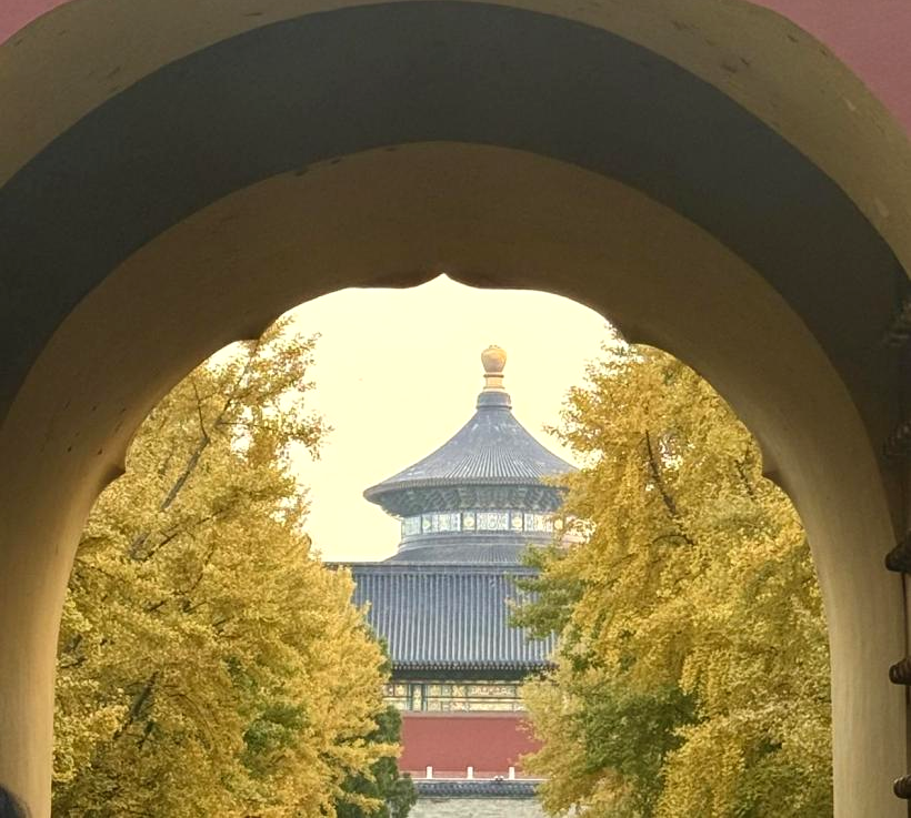 中国画讲求“外师造化,中得心源”。面对天坛这一“造化”与“心源”完美结合的人造奇迹,画家庞啸晨需要调动全部的学养与感悟,去“听”建筑无声的诉说,去“译”空间蕴含的密码。