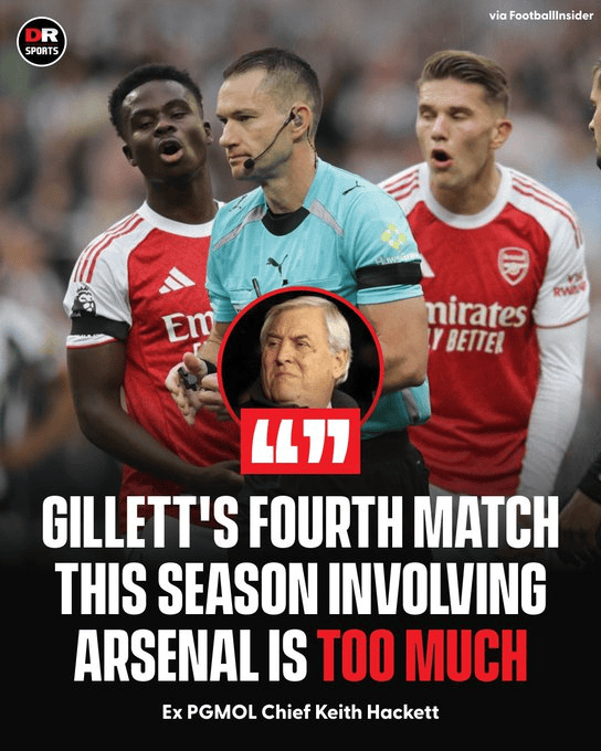 阿森纳6场英超吉列特4次参与执法, 前PGMOL主席质疑过于频繁