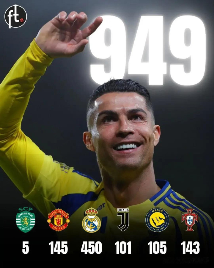利雅得胜利对阵哈萨征服的沙特联赛中,尽管上演帽子戏法的菲利克斯闪耀夺目,但在比赛中先射丢点球又上演世界波破门的C罗才是人们最为关注的明星。葡萄牙人已经打进了职业生涯的949球,距离一千球目标又近了一步。