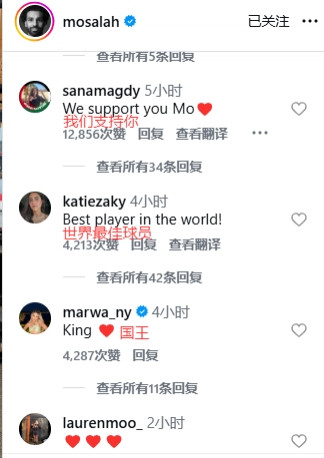 老队友亨德森评论支持,球迷也刷屏支持萨拉赫“国王,我们支持你,你永不独行。”